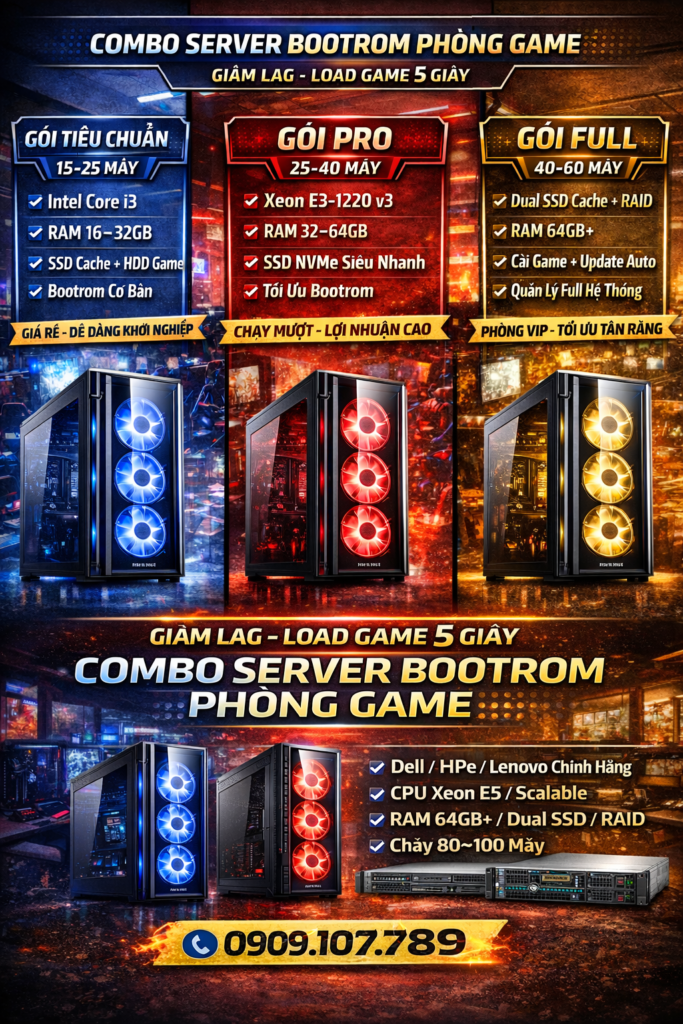 Server bootrom giá rẻ cho phòng net 15–60+ máy. Cấu hình tùy chọn, tối ưu chống lag, load game 5–10s. Cài đặt tận nơi, hỗ trợ 24/7. Server Bootrom Giá Rẻ Là Gì? Server bootrom giá rẻ là giải pháp sử dụng máy chủ trung tâm để lưu hệ điều hành và game, giúp toàn bộ máy trạm…